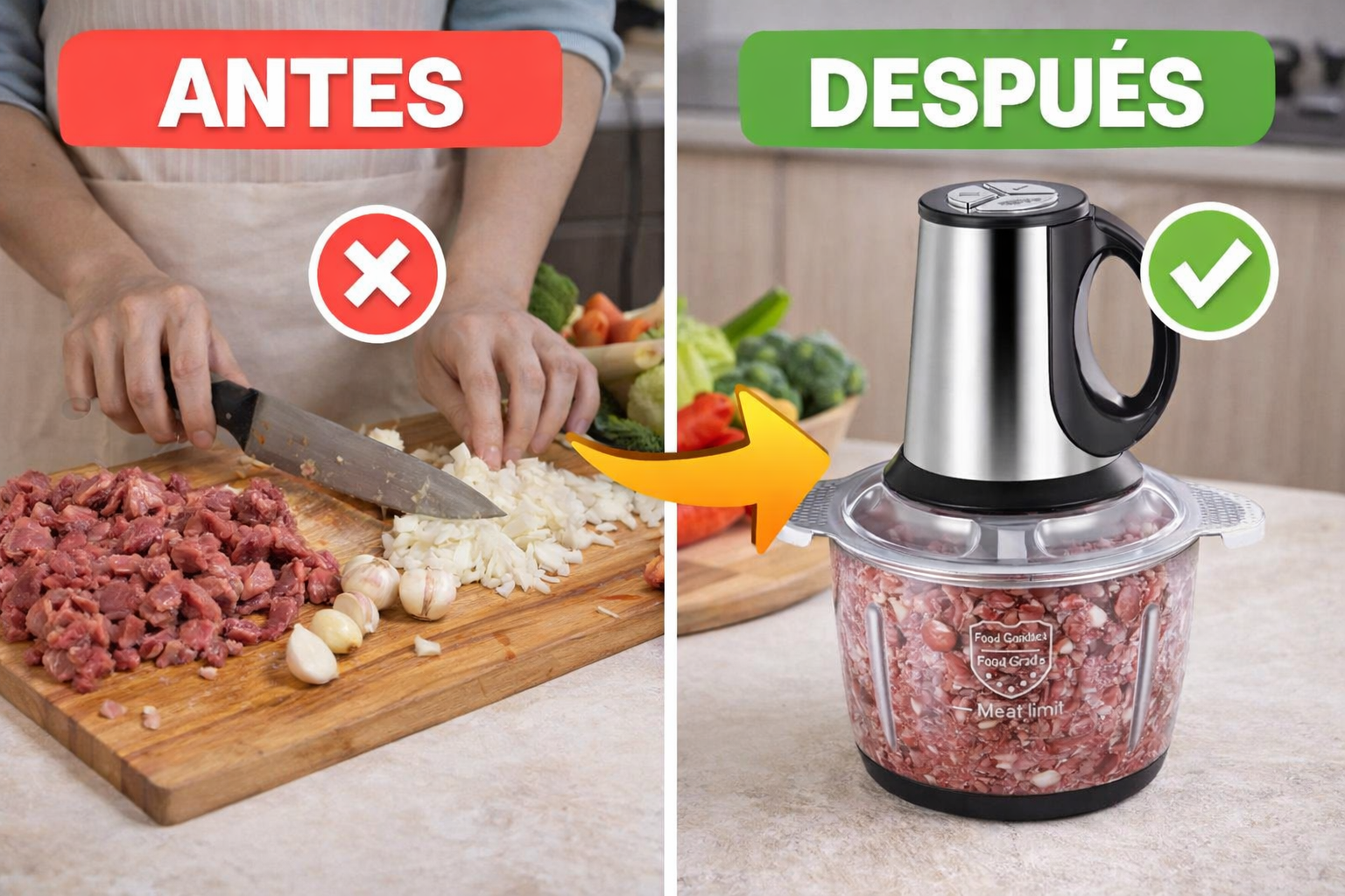 ¿Cansado de cortar cebolla, ajo o carne manualmente?